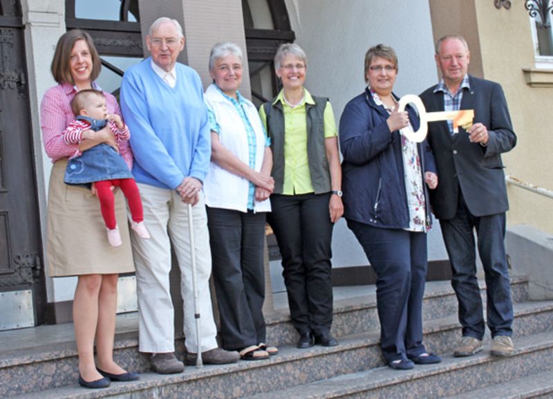 Mit der offiziellen Schlüsselübergabe durch Pfarrerin Claudia Raneberg (2.v.re.) und Kirchmeisterin Mechthild Hüsken (3.v.re.) am Montag, 15. Juli,geht das Martin-Luther-Haus an der Wettringer Straße in Steinfurt-Burgsteinfurt nun in die Hände der MLH Bürgerimmobilien eG über. Über die Höhe des Kaufpreises vereinbarten beide Seiten Stillschweigen.