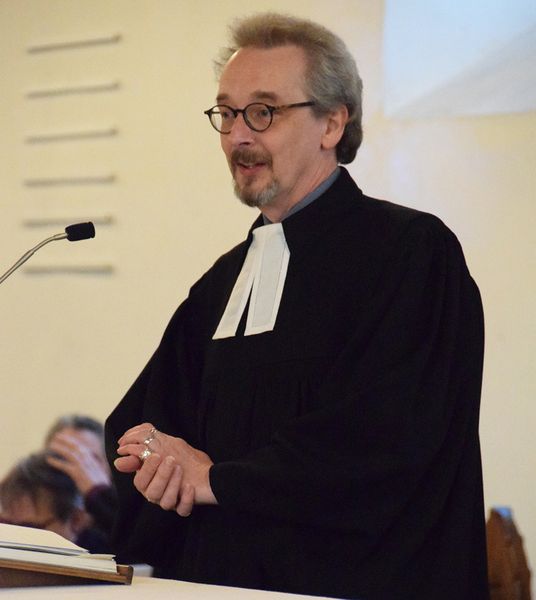 Pfarrer Hans-Peter Marker von der Kirchengemeinde Burgsteinfurt begrüßte die im Gotteshaus zahlreich erschienenen Gäste. „Heute ist uns nicht nach Jubeln, weil wir uns verabschieden“, betonte Pfarrer und Synodalassessor Axel Gehrmann von der Evangelischen Kirchengemeinde Bocholt, „verabschieden von Dir, liebe Susanne, die du nun an einen Ort gehst, den es nicht gibt.“ Damit spielte er auf die satirische Verschwörungstheorie aus dem Jahr 1994 an, nach der die Stadt Bielefeld nicht existiert.